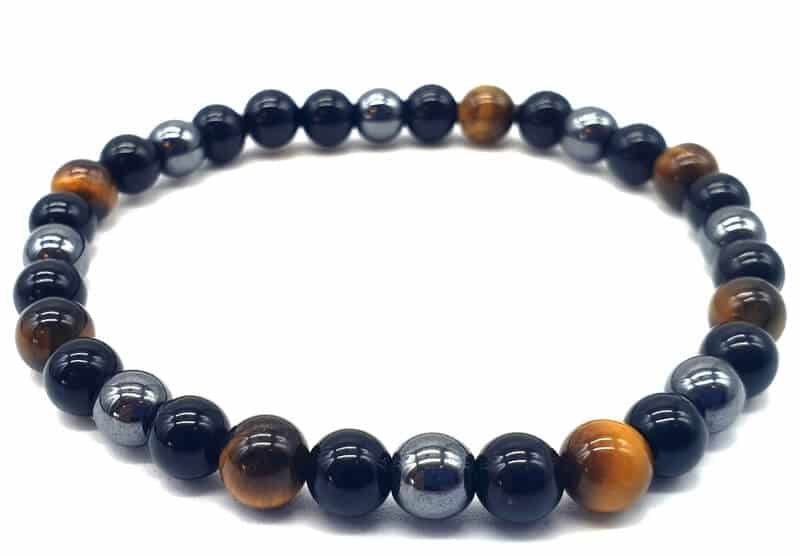Bracelet Protection Obsidienne, Hématite, Oeil tigre 6mm
